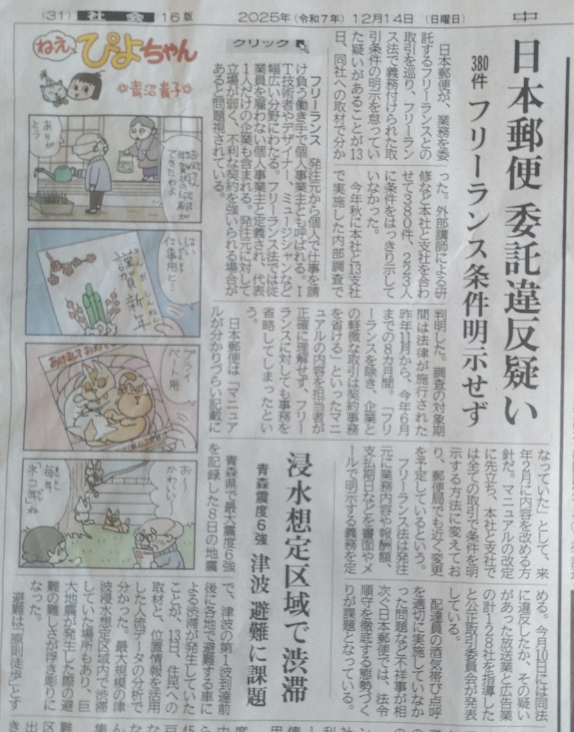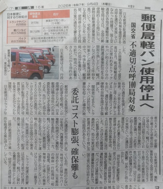 今回は、私が右側通行南進歩行で我が家の南隣エリア敷地の東口の北脇付近まで来た瞬間に、[福山市む8]が左折で私の目前に飛び出し、寸止めのような形で、私の目前に停車して、我が家の南隣の民家に配達した。