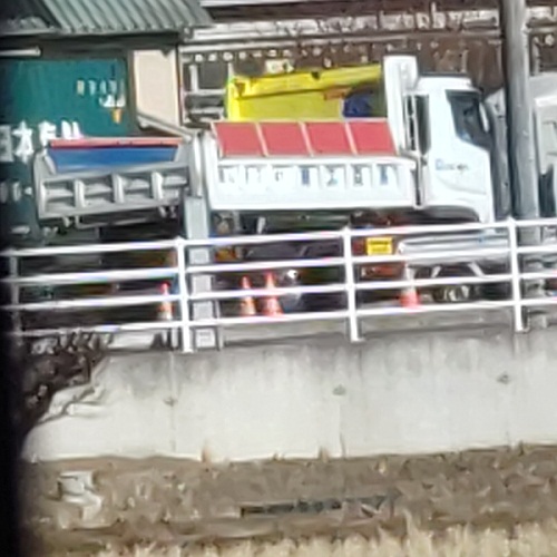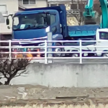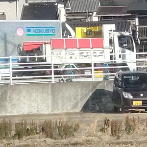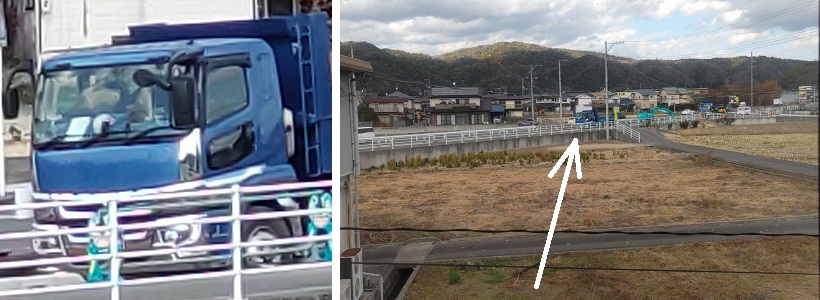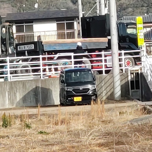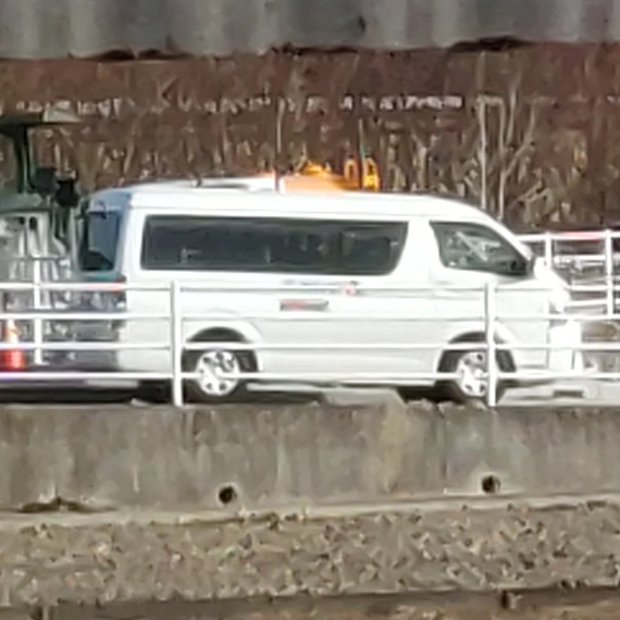工事の柵がまだ残っていて車両ナンバーを読めない。