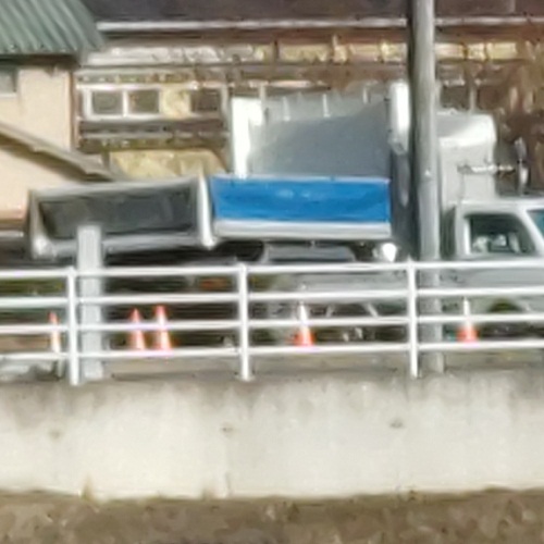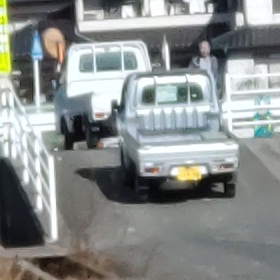 自宅西棟2階に位置する私の寝室の北窓から観測しても、自宅母屋1階台所の北窓から観測しても、自宅敷地東脇公道上から観測しても、水平な2本のバーのどちらかが邪魔に成って、大抵の車両はナンバーを読めない。