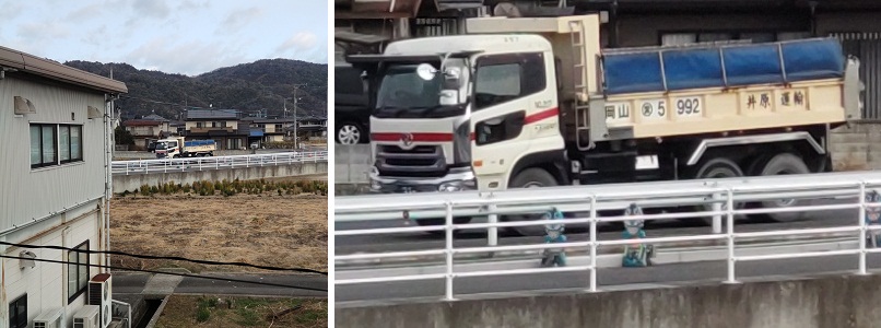 会社内番号福山営2290、許認可番号多分048079、公式ナンバー福山130い1708、ダンプ到着。