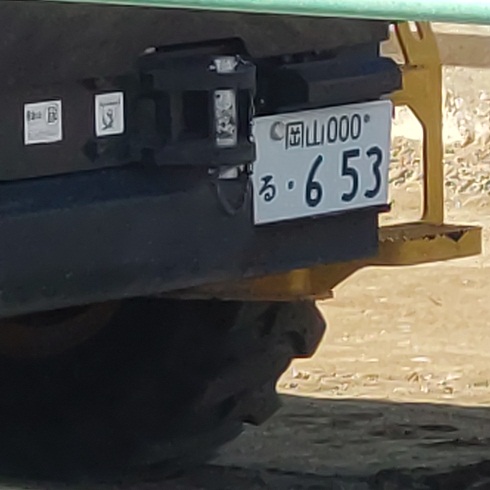 岡山000る653搬出準備中のようだ。佐藤重輸のトラックが岡山000る653を積載している。