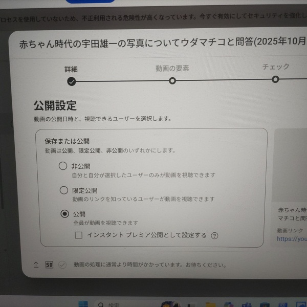 05:06から06:40までと12:08で私が指摘しているエピソードが、本件の中心です。 写真を見て直ぐには私は思い出せなかったが、この行を書いている2025年10月24日までには、当時の私の気持ちを思い出した。 思い出したけれど、50年以上の年月が経過しているので、自分の記憶に絶対の自信を持てない。 しかし、1987年頃(学生時代)に下宿で友人の清水匡太に、この話をしたと思う。 その時には、まだ20年ぐらいしか年月が経過していないので、記憶内容に自信を持った状態で話したはずだ。 もし何らかの方法でどこかに誰かがその時の私の発言内容を記録しているならば、その内容と照合する事によって、ここで私が述べる事の真実性をチェックする事が出来るだろう。 2025年時点の私の記憶では、宇田雄一である赤ちゃんの気持ちは以下でした。