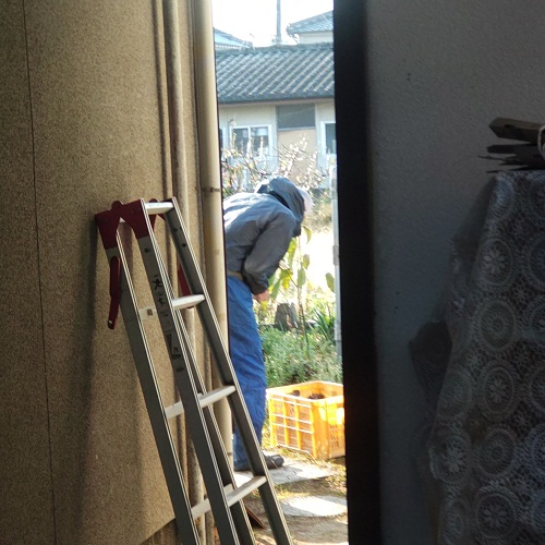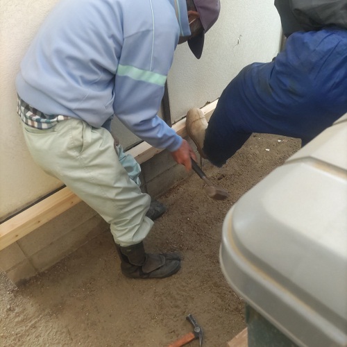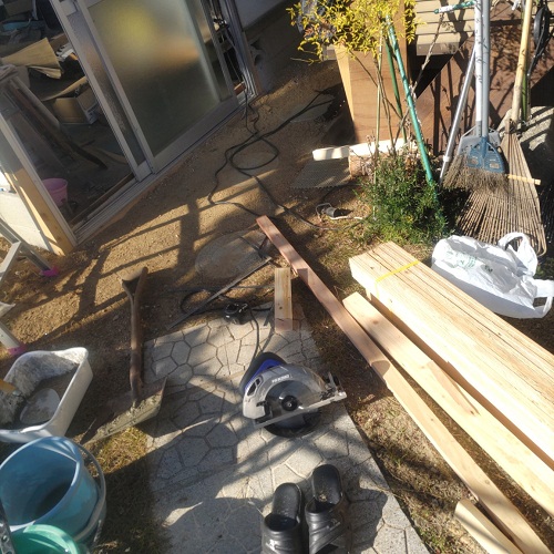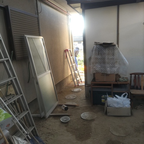 自宅敷地内ウダマチコのプレハブ修理。