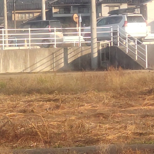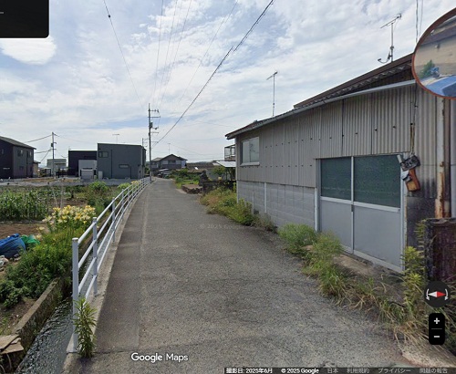 宇田雄一の自宅の南最寄交差点の北西脇民家の南側面に下端がすり切りで道路に接している様子をGoogleストリート・ビューで取得した。