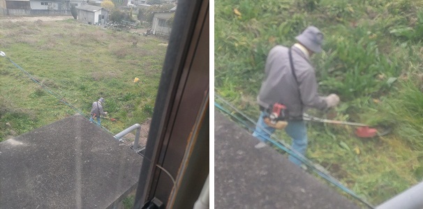 ヒーン異音が止んで、代わりに草刈騒音が始まった。