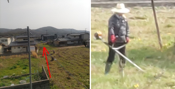 すると、自宅通り南端東脇付近の農地または土手斜面でエンジン草刈りアレルゲン騒音を発している人が見え、その真上辺りに写真の自転車が駐車されていた。