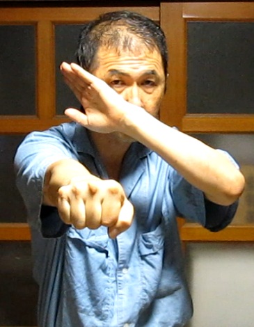 敵が後方に存在している場合は指を保護する為に指を曲げて平拳・熊手を使う。