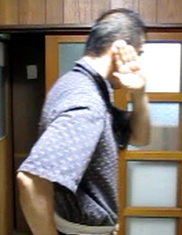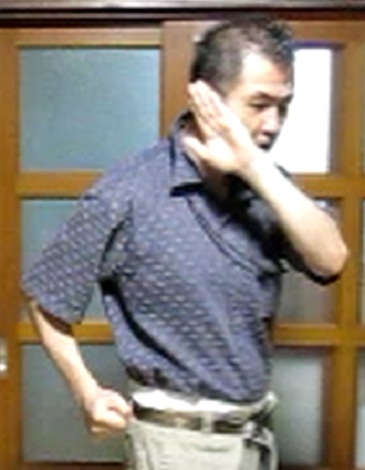 裏拳部位を頬骨の突起に着ける。敵の左フックとストレート打ちを防ぐ。 |