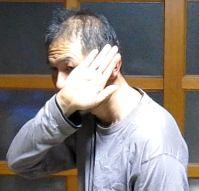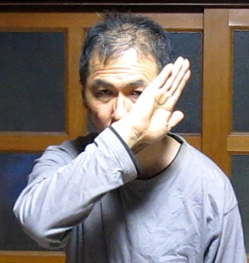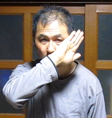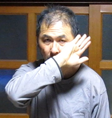| 裏拳部位を頬骨の突起に着ける。敵の左フックとストレート打ちを防ぐ。 |