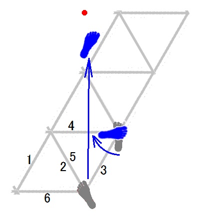 H3a1, H3b1, H3c1, H3d1では、予定よりも内側に踏み込んでしまうミスが出やすいのだったが、内側に踏み込んでしまうんだったら、思い切ってH3e1にしてしまった方が良い。 正しく踏み込んだH3a1, H3b1, H3c1, H3d1には、短前ストレート打ちが出来る、という長所が有るが、内側に踏み込んでしまって崩れたH3a1, H3b1, H3c1, H3d1には、H3e1より優れている点は何処にも無い。 |