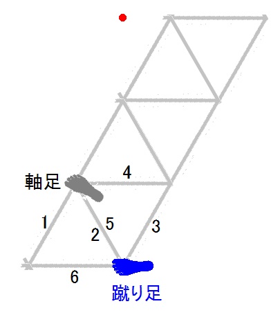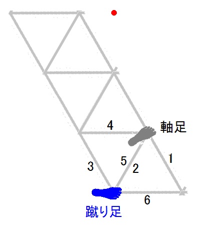 F2b2では、第2状態基本形から蹴り動作(角運動量の補給)を始めるが、第2状態後形に到達するまで蹴り足を離陸させない方が上手く行くという実感を得た。 ただし、第2状態後形で一時停止すると上手く行かない、という実感も得た。 蹴り足を離陸させるタイミングは、両足の大腿の内側が互いに触れ合ってから(第2状態後形より少し後)にすべきであり、それより早く離陸させると股関節に痛みが出る、と体感した。 角運動量の補給を最大化したい場合には腕の振りも併用する。 |