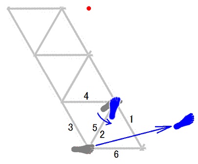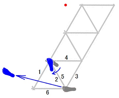 フォアハンド打ちやバックハンド打ちの代わりに、フォアバック同時打ちや、極真空手で「円形逆突き」と呼ばれている技を実行してもよい。 H2cとH2dでは、実際にやってみると、標的に近い方の足の爪先を十分に外に向ける事を怠りがちだったので、標的に近い方の足の爪先を外に向ける事を意識して練習する事にした。 |