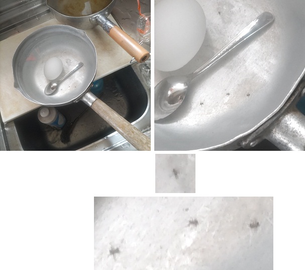 --- 31日@2025年01月@日記・・・宇田雄一の自宅母屋1階台所内のネズミの状況が書かれている。 --- 2025 0806 0124 今自宅母屋1階居間で食事中ゴキブリ3匹を見た。 これ以前に自宅母屋1階居間でゴキブリを見た事は無い。 敵の手口を暴露index.htmlにこのページへのリンクのアンカーテキストを追記した事への反応だろう。 --- --- 2025_0911_0936 沸かした湯にまた蚊が飛び入っている。 ここ数日は毎朝連続だ。 ![]() 何年か前までは1回も見た事が無い現象だ。 ここ数年はこういう事が多い。 飛んで火に入る夏の虫と言うから蚊には熱湯に飛び入る本能も有るのかもしれないが、飛び入れば死ぬだけに、本能ではなく調教されているのではないかと思えてしょうがない。 白湯なら見えるので気付くが、例えばカレーライス製作では虫が飛び入っても見えないので気付かない計算に成る。 --- 2025_1015_1026 卵をゆでスプーンを熱で消毒する為に鍋で湯を沸かしたら、数分間の間に蚊が4匹も飛び込んでいた。 異常である。 ![]() ---
