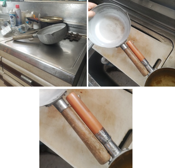 倒れる鍋の柄が少しだが長い事に気付いた。