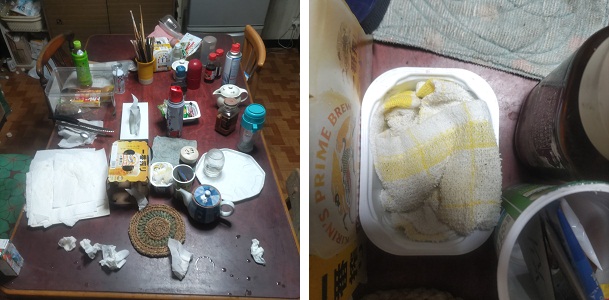 --- 2025_0913_1816 自宅母屋1階台所主テーブル北東隅スペース潰し。 ここは、冷蔵庫から取り出した物や、冷蔵庫に入れる直前の物を置くスペースです。 ![]() --- 2025_0916_1812 自宅母屋1階台所主テーブルの奥まった位置に不審なガラス容器群。 引っ張り出して調べて見た。 どれも古い感じで食器ではなく空き瓶の類だ。 現在では使用見込みがないと思われる。 トレイも木製やプラスチック製の盆ではなく発泡スチロール製のピザの中敷きで、トレイをつかんでガラス容器郡全体を持ち上げる事が出来ない。 パッと見では自然な食卓だが、卓上スペースをこうやって減らし、他の集団ストーカー工作の言い訳をつくっていると思われる。 ウダマチコ室出入口脇に移動しておいた。 後で本件についてウダマチコにインタビュー(録音あり)したら、ウダマチコはこれらの容器で飲料を飲むと答えた。 食器ではなく空きビンなので、それはウソだろう。 ![]() --- 2025_1011_0026 自宅母屋1階居間メインテーブルにまたスペース圧迫具。 本件執筆中、以下の写真を見て私の首右側面にアレルギー反応が生じた。 ![]() --- 2025_1011_1826 自宅母屋1階台所、また私のコースターの位置が変えられ上に盆が乗せられている。 私はいつもコースターをテーブルの南縁に寄せて置いている。 鍋などをとっさにコースターの上に置ける様にだ。 このコースターがテーブルの奥に移動されたり、コースターの上に障害物が置かれる事が繰り返されている。 ![]() --- |