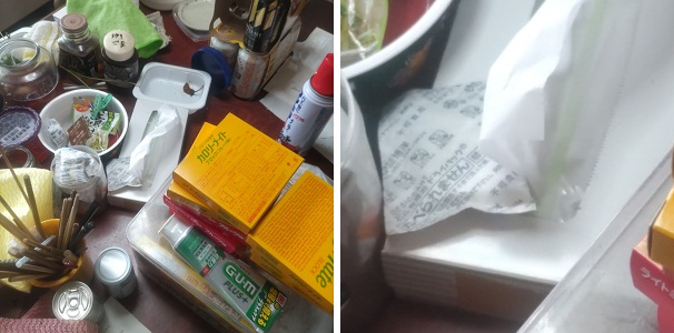 < 物品の出し入れ穴に障害物を被せる > | ||||||||||||||
