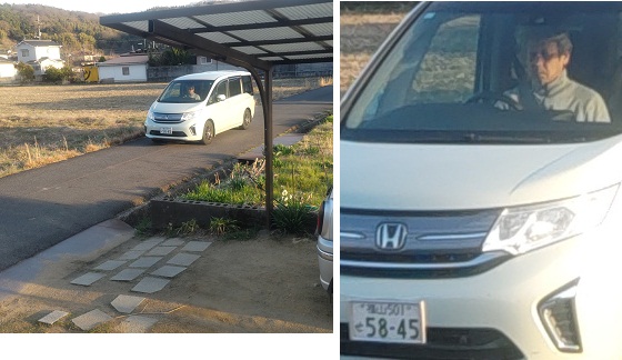 旧スミヨシ宅の東脇に非西寄せで停車状態を私が見ると発進。前日私が散髪屋で話した内容に反応して来たろう |