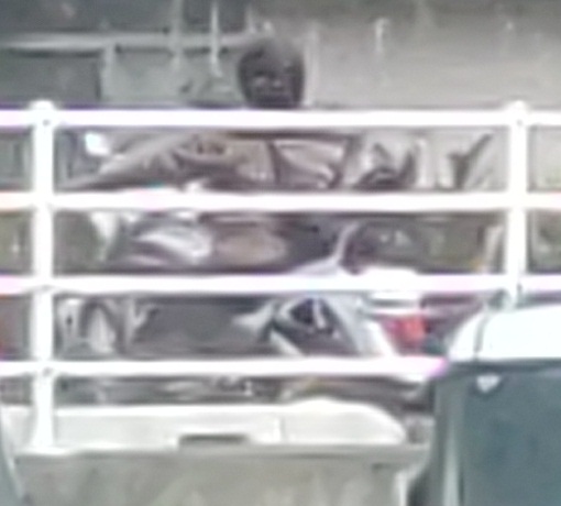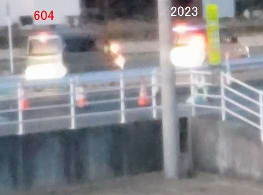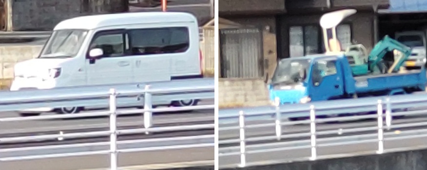 ナンバー不明軽トラック、21白プレート黒車体、同伴