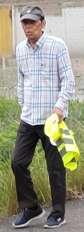 例の蛍光黄色ベストを手に持っている様なので要注意だ |