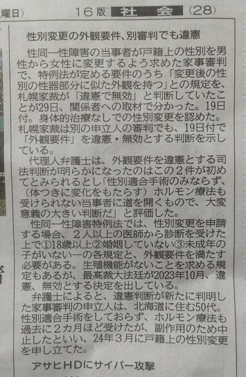 性別は、本人が男だと思えば男、女だと思えば女、という事にされてしまいそうである。 そうであるならば、性別とか男とか女という言葉とは別の言葉を新規に作って使う必要が有る。 結婚も同様です。 --- 2025_1001_1233にメモした。 性別変更の外観要件、別審判でも違憲 LGBT関連 ![]() --- |