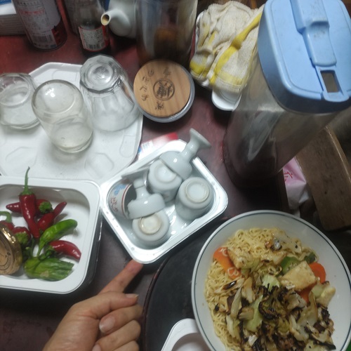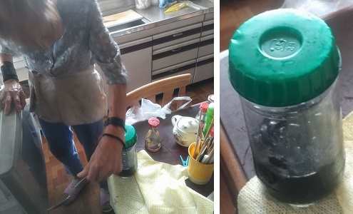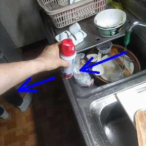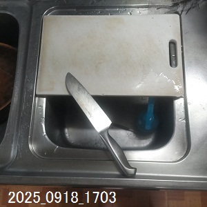 --- 2025_0910_2334 いまウダマチコが殺虫スプレー缶の底の縁を流し台のシンクの西壁上辺にぶつけてガンッという音を発したのを見た。 殺虫スプレー缶を西進移動する途中で図らずもぶつかったという体裁だったが詳細な特徴から判断して故意にぶつけているように見えた。 以下は再現映像です。写真中の手は私(宇田雄一)の手です。 ![]() --- 2025_0929_1003 自宅母屋1階脱衣室洗面台シンク側面内側にウダマチコが歯ブラシの柄尻を打ちつけてカッといううるさい音を発した。 写真は、どうやったのか、という私の質問に答えてウダマチコが再現した様子。 ウダマチコの口元が異常な感じに見える。 ![]() --- 2025_0908_2040 うるさい音が聞こえたのでウダマチコに質問した。 写真のプラスチック製皿が自宅母屋1階台所東出窓から流し台上に落ちた音だろう、とウダマチコは答えた。 質問したのは音が聞こえた10秒後ぐらいなのにウダマチコは断言しない。 できるだけ答えないようにしている、答え渋っているのがわかる。 ![]() --- 2025_0909_2019 毎日義務のように繰り返されるうるさい音が聞こえたのでウダマチコに質問した。 自宅母屋1階台所でウダマチコが焼き調理中の肉を扱っている箸を床に落とした音だった。 ![]()