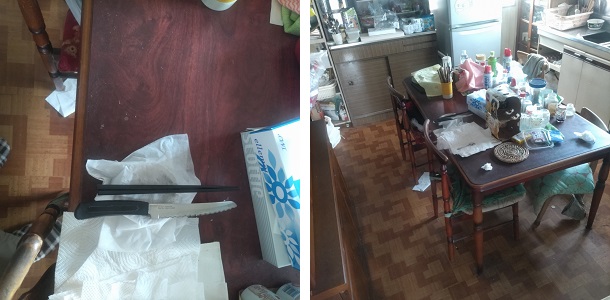 --- 2025_0915_1122 さっき自宅母屋1階台所でうるさい音が聞こえ、ウダオサムから台上の包丁がテーブル上に転げ落ちた音だと説明を受けた。 しかし今こうして見ると、包丁は両脇を椅子の背もたれに挟まれ奥まった所にあるので、包丁にウダオサムの身体が誤って接触する事はなさそうだ。 包丁は私の包丁です。 ![]() --- 2025_0910_0017 写真のヨーグルトの空き容器をウダマチコが自宅母屋1階廊下に落とした。 落として数秒以内に質問したのにウダマチコはどういう動作でそうなったか答える事ができなかった。 ![]() このヨーグルト容器は、自宅母屋1階脱衣室の赤色ワゴンの最上段に置かれていた物です。 このヨーグルト容器がその位置に置かれ始めたのは数年前で、それまで私はこのヨーグルト容器を見た事が全く無かった。 ![]() 私は歯磨き中、自宅母屋1階脱衣室の赤色ワゴンの最上段に自分のショルダーバッグを置くので、そのスペースを減らす目的でこのヨーグルト容器が置かれ始めた、と私は認識していた、それも間違ってないと思う。 置かれ始めた時点で、このヨーグルト容器は不審に古びていた。 また、私が見慣れているヨーグルト容器とは違う、我が家で私かウダオサムかウダマチコが食べるヨーグルトとは異質な感じがする。 私が見慣れているヨーグルト容器は、果実が入っていない場合は、青色基調です、緑色基調の容器は記憶に無い。 一般論として思うんだけど、何かの犯罪で使われた道具というのは、警察が入手ルートやインターネット検索履歴を手がかりに操作を進めるのが通例に成っている。 そこで敵は、犯罪に使う道具を予め買いためておき何十年も寝かした後で犯行で使う、という風にしているのではないか。 そうすれば、最近それを買った人、検索した人、というのを警察が調べても、犯人にはたどり着けない。