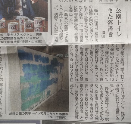 落書きもアレルギー発症にガスっと効くんじゃないだろうか。 また、落書きが有るとそこに別の落書きが追加されたり付近の治安が悪化する、という法則性が知られている。 この法則は普通それ以上の事は言われていないが、個人宅を狙う闇バイト系の犯罪者が家屋に暗号を筆記して同業者に知らせるのと同じではないか、と私は気付いた。 印の付けられた個人宅に複数の犯罪者が集中するのと同じ原理で、落書きの有る場所の周辺の治安が悪化するのではないか。 --- 2025_0911_1133 公園トイレまた落書き福山2025 0901 0930 ![]() --- |