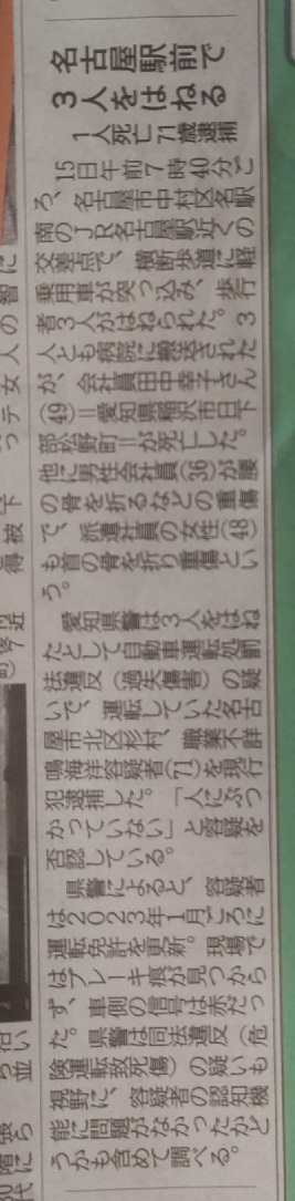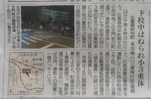 この事件は私がこのページへのリンクをトップページに記載したよりも後に起こった事件なので、歩行小学生の列に自動車で突っ込む犯罪の一般的な類型からは外れる事例かもしれない。
