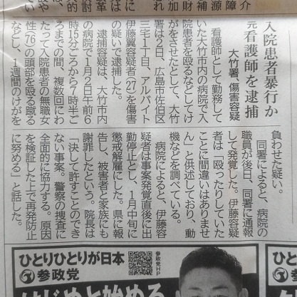 精神病冤病→精神科医療で薬物療法や外科手術というルートもこれです。 --- 2025_0329_2250 いまNHKスペシャルを視聴し終わった。 NHK総合で22時00分開始だった。 美容医療の予後が悪いケースが続出しているという話だった。 だから言ったじゃないか、というのが正直な感想だ。 今日は土曜日です。 被害者が被害内容を公表できない契約を結ばされる、という話は、この番組で見たんじゃなかったっけ。 ![]() --- 2025_0916_1159にメモした。 美容医療適切指導を 中国新聞2025 0915 23ページ ![]() --- 2025_0930_1216にメモした。 医療事故調査制度について。中国新聞2025年09月29日号21ページ。 ![]() --- --- 2025_1011_1027にメモした。 医療名目での暴力ってわけじゃないんだけど。 大崎上島の医院、指定医取り消し。 個別指導を繰り返し欠席、監査にも応じなかった。 ![]() --- 2025_1105_1254にメモした。 水銀含む銀歯の禁止へ議論、という新聞記事。 これまで歯の詰め物も集団ストーカーが悪用するチャンネルの1つだったようだ。 ![]() --- 赤ちゃん時代の宇田雄一が頭部に不正な外科手術を受けた疑いが浮上した。 ロボトミー手術ではないか。 21日@2025年10月@日記で詳述されている。 --- 唾液でノドがふさがれ呼吸が出来なくなった事に驚いて頭部を動かしグラインダなどの歯科治療器具で口腔内に大怪我を負う様に狙って、歯科医が故意に唾液の排出を拒む、という工作を宇田雄一が2023年などに歯科受診時に受けた事が、03日@2023年10月@日記に書かれている。 --- 2026_0118_1051にメモした。 週刊文春2026年01月22日号記事見出しに、 「事務所に病気をでっち上げられ追い出されました」と証言している芸能人が居る事が書かれている。 ![]() --- 2026_0204_0921にメモした。 看護師が入院患者を暴行か、という新聞記事。 ![]() --- 参考:03日@2023年10月@日記、21日@2025年10月@日記、 |