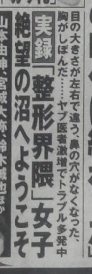 精神病冤病→精神科医療で薬物療法や外科手術というルートもこれです。 --- 2025_0329_2250 いまNHKスペシャルを視聴し終わった。 NHK総合で22時00分開始だった。 美容医療の予後が悪いケースが続出しているという話だった。 だから言ったじゃないか、というのが正直な感想だ。 今日は土曜日です。 被害者が被害内容を公表できない契約を結ばされる、という話は、この番組で見たんじゃなかったっけ。 ![]() --- 2025_0916_1159にメモした。 美容医療適切指導を 中国新聞2025 0915 23ページ ![]() --- 2026_0319_0936にメモした。 週刊現代2026年03月30日号の記事見出しに、美容整形のだと思われる被害が列挙されている。 ![]() --- 2025_0930_1216にメモした。 医療事故調査制度について。中国新聞2025年09月29日号21ページ。 ![]() --- --- 2025_1011_1027にメモした。 医療名目での暴力ってわけじゃないんだけど。 大崎上島の医院、指定医取り消し。 個別指導を繰り返し欠席、監査にも応じなかった。 ![]() --- 2025_1105_1254にメモした。 水銀含む銀歯の禁止へ議論、という新聞記事。 これまで歯の詰め物も集団ストーカーが悪用するチャンネルの1つだったようだ。 ![]() --- 赤ちゃん時代の宇田雄一が頭部に不正な外科手術を受けた疑いが浮上した。 ロボトミー手術ではないか。 21日@2025年10月@日記で詳述されている。 --- 唾液でノドがふさがれ呼吸が出来なくなった事に驚いて頭部を動かしグラインダなどの歯科治療器具で口腔内に大怪我を負う様に狙って、歯科医が故意に唾液の排出を拒む、という工作を宇田雄一が2023年などに歯科受診時に受けた事が、03日@2023年10月@日記に書かれている。 --- 2026_0118_1051にメモした。 週刊文春2026年01月22日号記事見出しに、 「事務所に病気をでっち上げられ追い出されました」と証言している芸能人が居る事が書かれている。 ![]() --- 2026_0204_0921にメモした。 看護師が入院患者を暴行か、という新聞記事。 ![]() --- 参考:03日@2023年10月@日記、21日@2025年10月@日記、 |