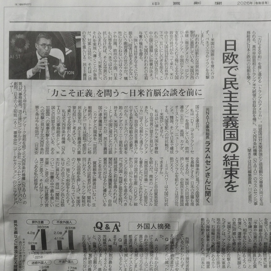 元NATO事務総長ラスムセンさんの主張を要約した見出しのようだ。
